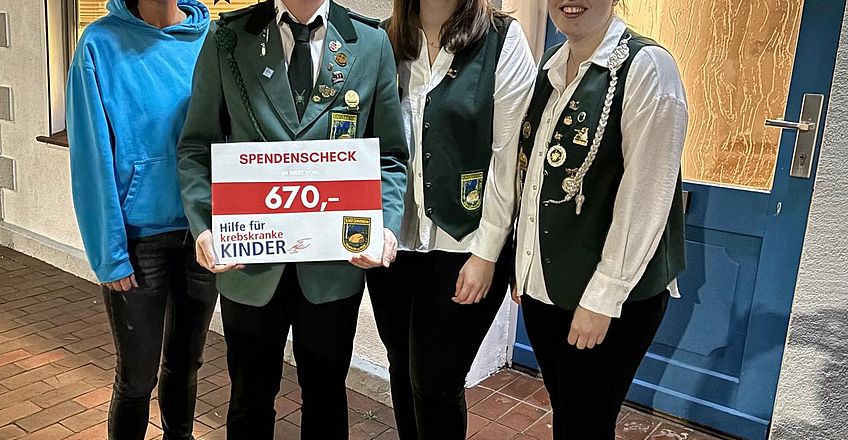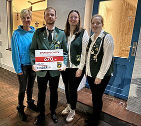 Die Mitglieder des Schützenvereins Hemsloh haben 4 Veranstaltungen genutzt um für den Verein „Hilfe für krebskranke Kinder und Jugendliche“ Spenden zu sammeln. Besonders die Schützenjugend war emsig am Sammeln und hatte auch den Wunsch die Spende an die Kinderkrebshilfe zu geben. Zusammen kam über viele kleine Spenden der stolze Betrag von 670 €, der von Robin Dietzmann, Lara Tatgenhorst und Carolin Klöcker an Manuela Bröring und Susanne Tausendfreund übergeben wurde.